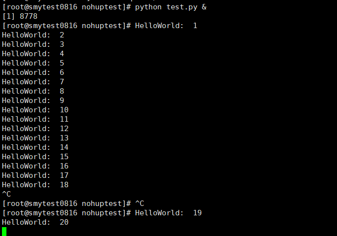 什么意思呢? 意思是说, 当你在执行 python test.py & 的时候, 即使你用ctrl C, 那么python test.py照样运行(因为对SIGINT信号免疫)。 但是要注意, 如果你直接关掉shell后, 那么, 这个python进程同样消失。 可见, &的后台并不硬(因为对SIGHUP信号不免疫)。