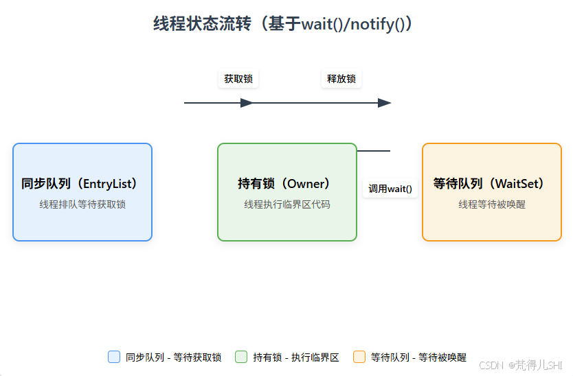问题:被唤醒的线程进入同步队列后,因锁未释放,只能一直等待,导致 “唤醒无效”。正确写法:notify () 后尽快释放锁,避免后续耗时操作: