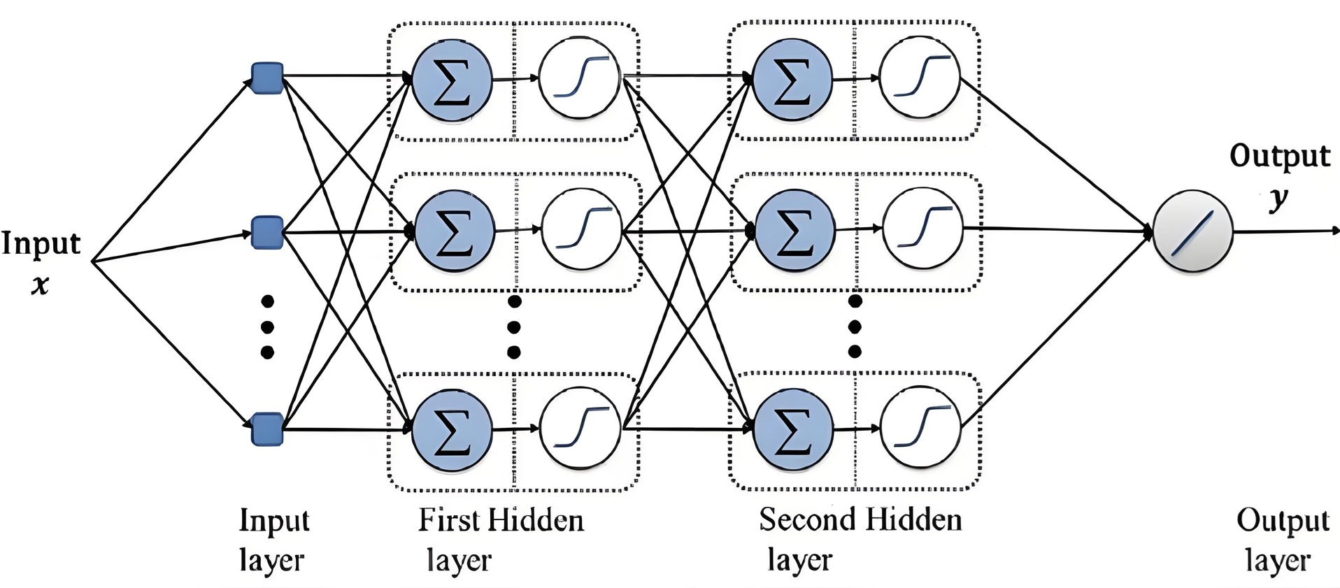 其中,隐藏层使用 Sigmoid 激活函数,输出层使用线性激活函数,损失函数采用均方误差(MSE)。