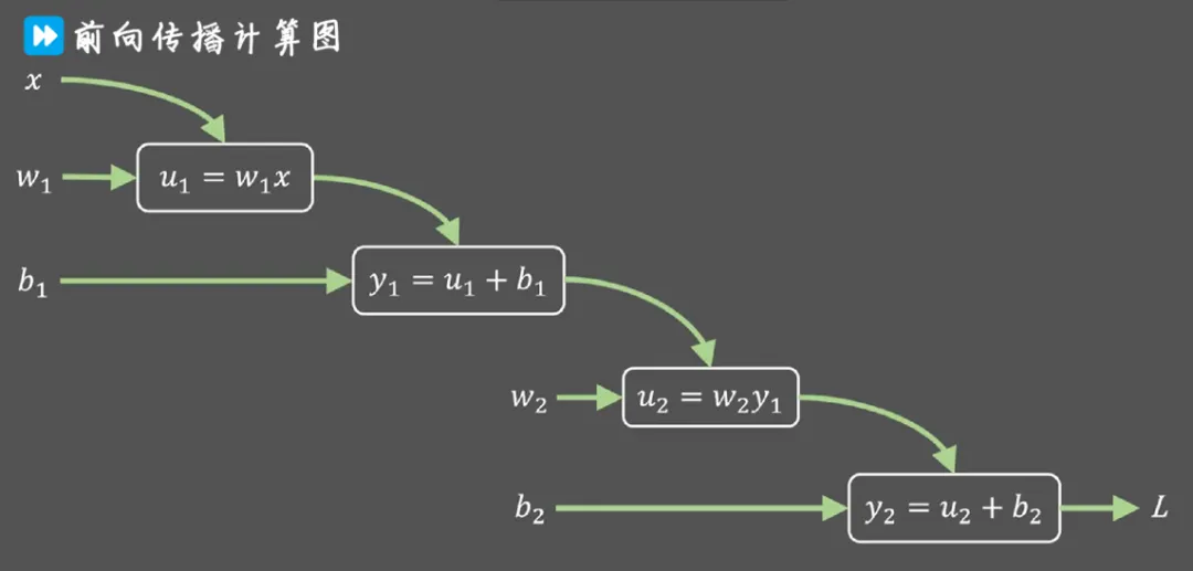 ∂L∂w=∂L∂y×∂y∂z×∂z∂w \frac{\partial L}{\partial w} = \frac{\partial L}{\partial y} \times \frac{\partial y}{\partial z} \times \frac{\partial z}{\partial w} ∂w∂L=∂y∂L×∂z∂y×∂w∂z