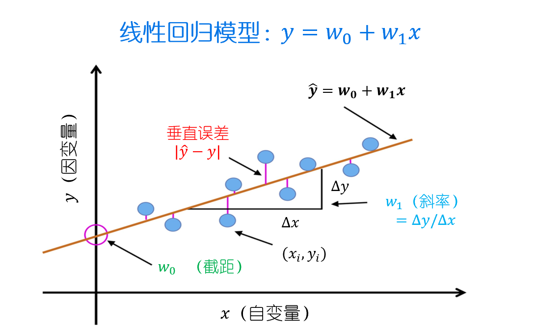线性回归的目标是找到一个权重向量 ω\omegaω,使得预测值 ωTxi\omega^T x_iωTxi 与真实值 yiy_iyi 之间的平方误差最小。