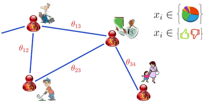 无向图模型 (如马尔可夫随机场):表示相互作用关系。