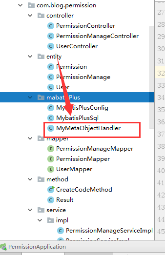 这个配置对应的文件,是我创建的一个配置文件 MyMetaObjectHandler.java 所在的地方.