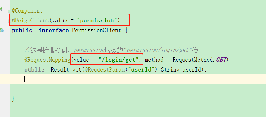 Result result=permissionClient.get(userId);