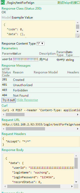 可以看到,我测试Feign跨服务是成功了的,当然,我这次测试是自己跨服务调用自己,当然会有问题,不过这里暂且不提。
