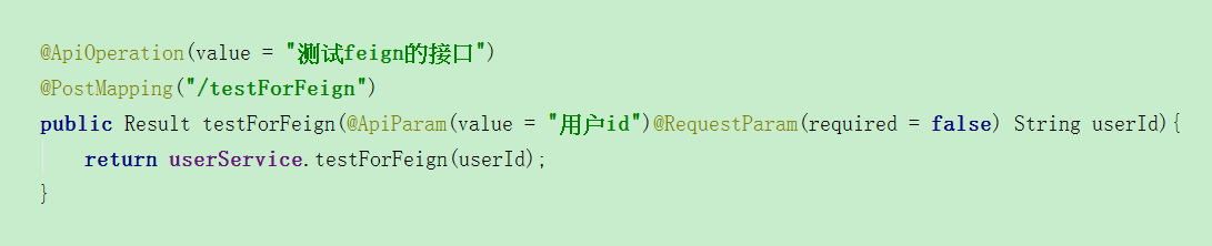 public Result testForFeign(@ApiParam(value = "用户id")@RequestParam(required = false) String userId){