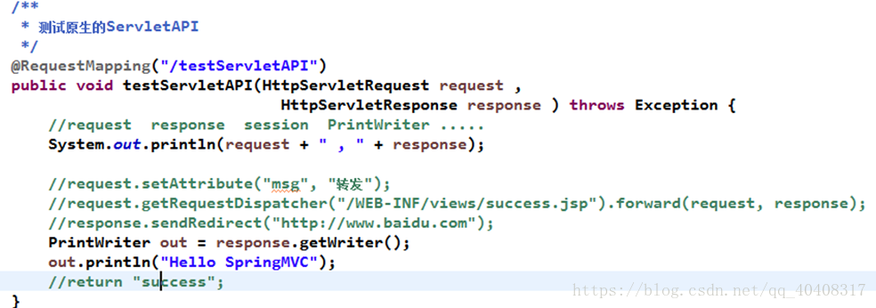 a.SpringMVC支持在目标方法的入参中定义原生的Servlet相关的对象,常用的request response session等.