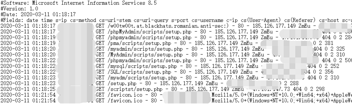 如果你发现日志里有类似这样的记录,很明显是有人在暴力扫描你的网站后台。静态网站一般不存在后台之说,动态网站也很少会有人不对后台的管理员入口设置IP限制。如何你觉得这种行为非常恶心,也可以在你的IIS服务器里对这一IP进行永久封禁。