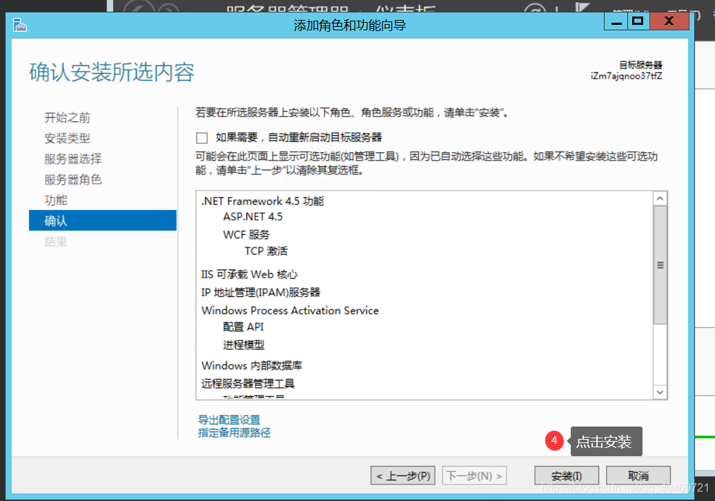 3.根据个人需要安装相应的服务,一般来说部署静态网站勾选第一二项“.NET Framework3.5”“.NET Framework4.5”就可以了。