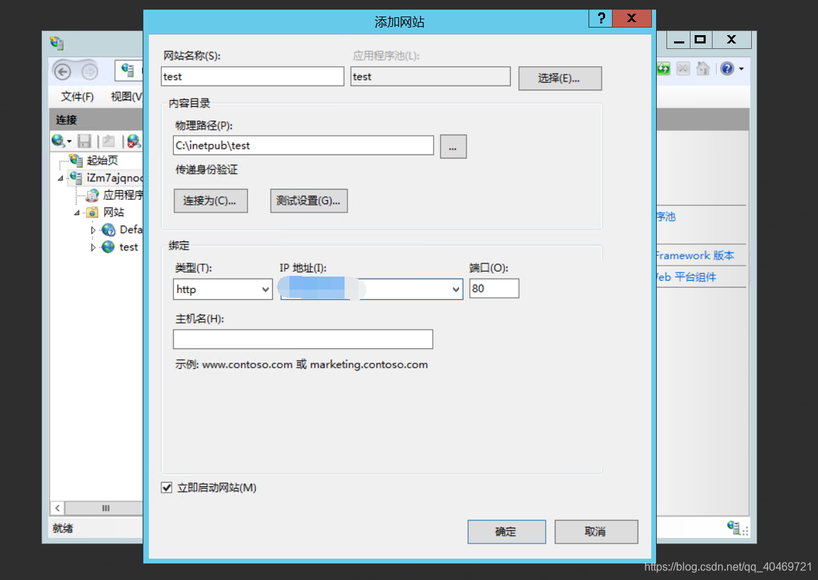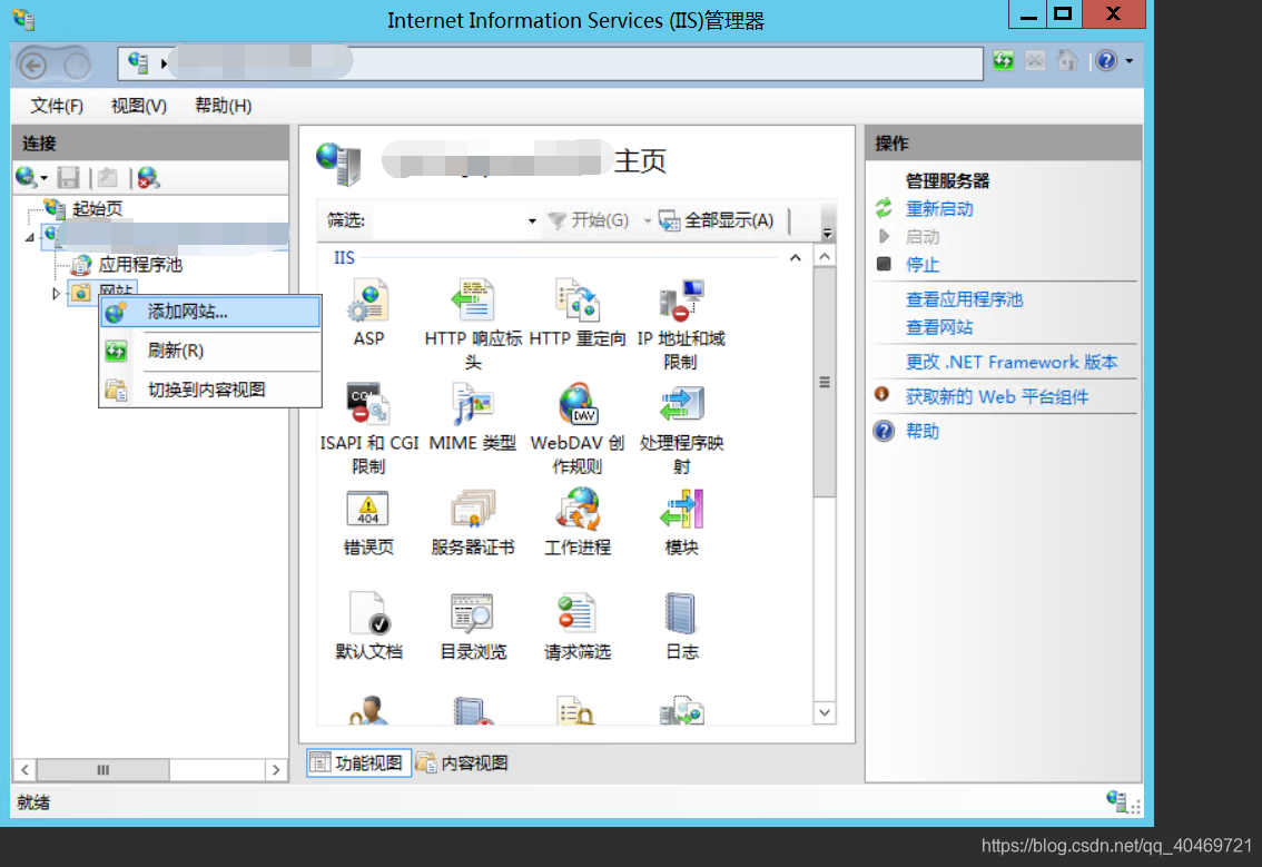 1.打开安装完成的IIS管理器,右击网站,点击添加网站