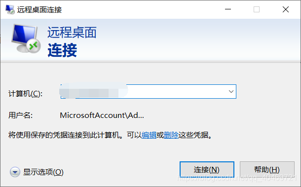 - 通过windows操作系统自带的远程桌面连接程序:win+R键入mstsc打开远程桌面连接程序