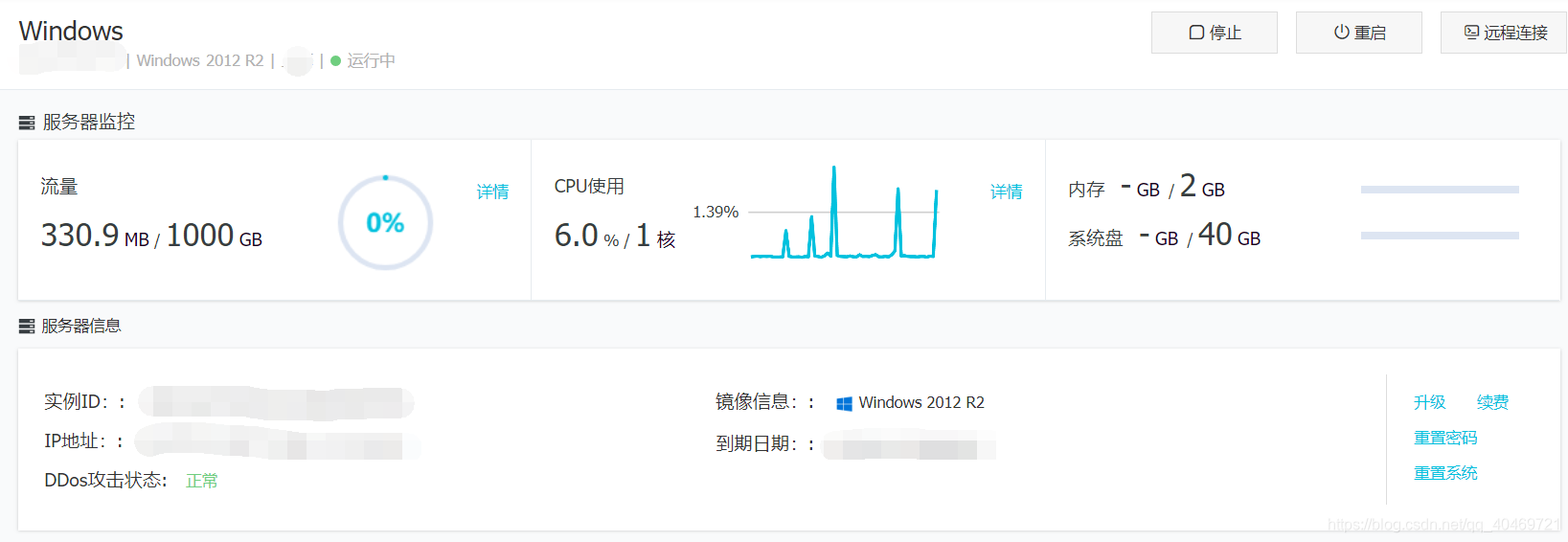 这里展示了你的服务器的所有状态信息以及可以远程进行的所有操作,并且应当注意保护你的实例ID,IP地址等隐私信息。
