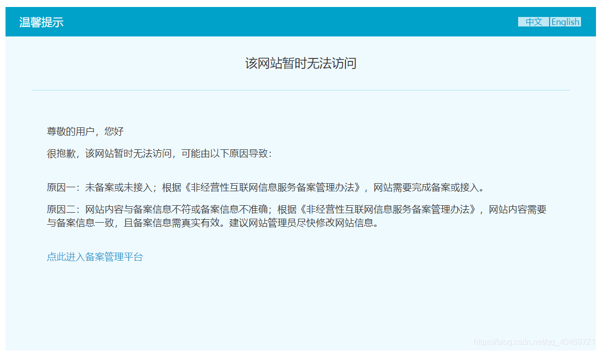 5.如果你购买了域名,可以直接把域名解析到你的服务器,这样输入域名就可以访问你的网站,使别人更容易记住你的网站入口。由于使用的是阿里云境内的服务器,因此必须要进行备案才可以正常通过域名访问。