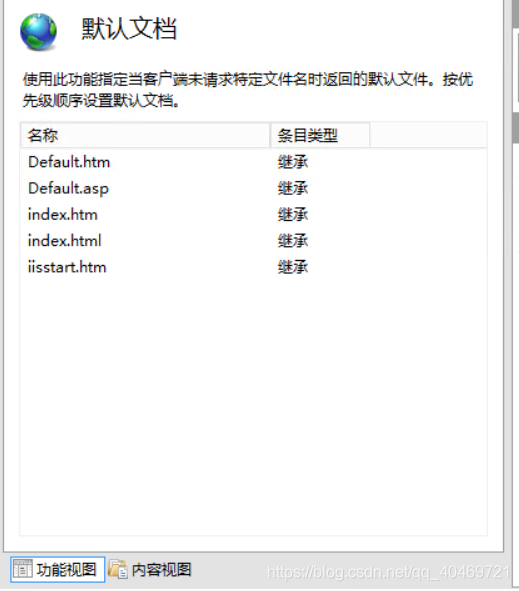 3.值得注意的是,默认文档里所包含的文件名是系统用于识别网站入口文件的索引。在这里我也图省事创建了一个文件夹只包含一个名为index.htm的文件用于展示