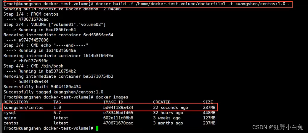 [root@iZ2ze3omirvragaujkhihjZ docker-test-volume]# docker build -f /home/docker-test-volume/dockerfile1 -t hippo/centos:1.0 .