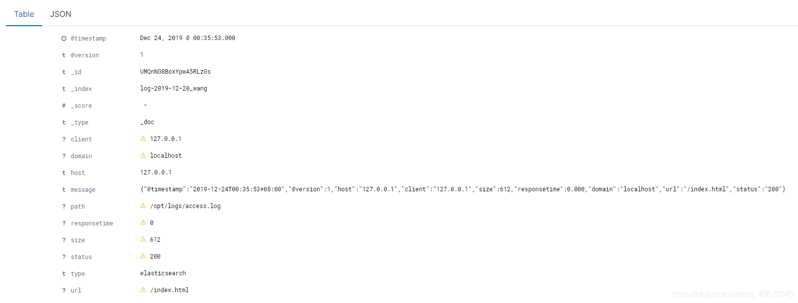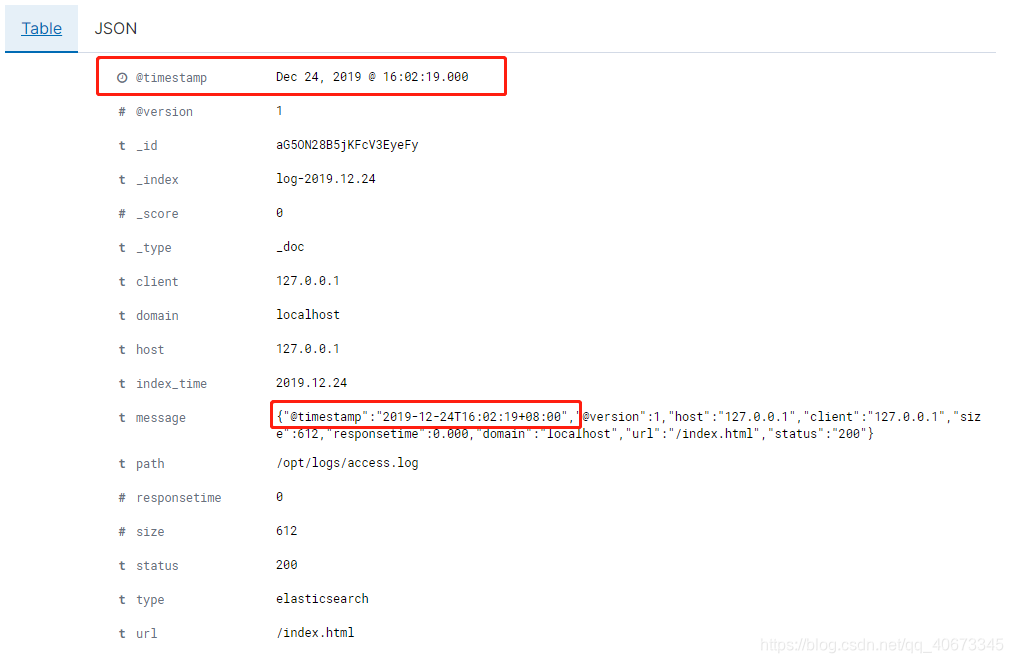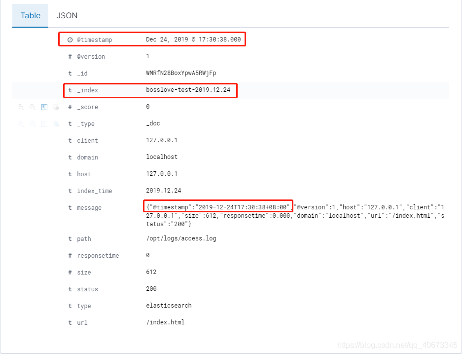 {"@timestamp":"2019-12-24T17:30:38+08:00","@version":1,"host":"127.0.0.1","client":"127.0.0.1","size":612,"responsetime":0.000,"domain":"localhost","url":"/index.html","status":"200"}