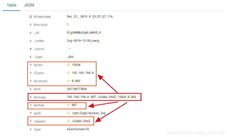 可以看到message中的内容分解成了单独的属性展示出来,这就是格式化成功了。