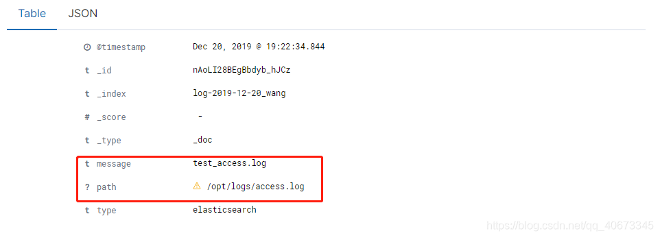 存放到elasticsearch中,并且在kibana上显示,屏蔽掉一些属性("host","@version"),添加一条文件路径属性(path):