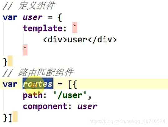 VueRouter初步理解:1 定义(路由)组件 2 定义路由(路径和组件名)3 创建路由实例 把定义的路由当参数穿进去 4 把路由实例挂载到根实例