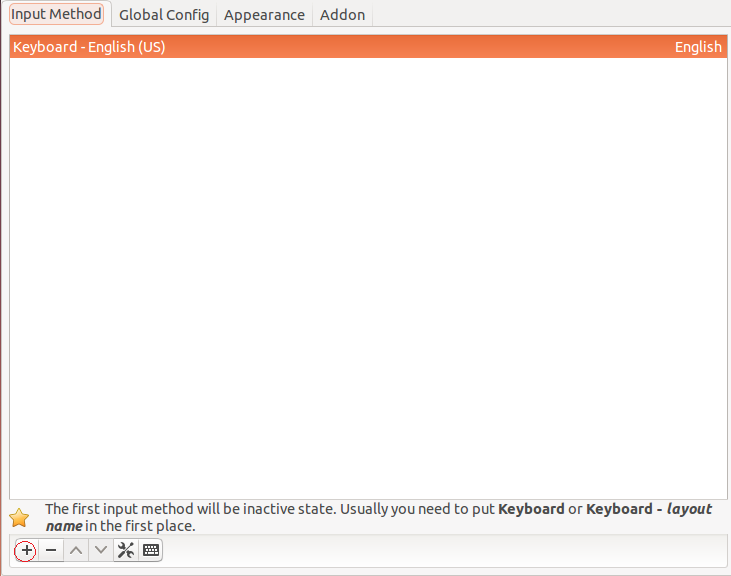 (2) 在命令行终端中输入下面命令,可以弹出Input Method Configuration版面(如下图所示):