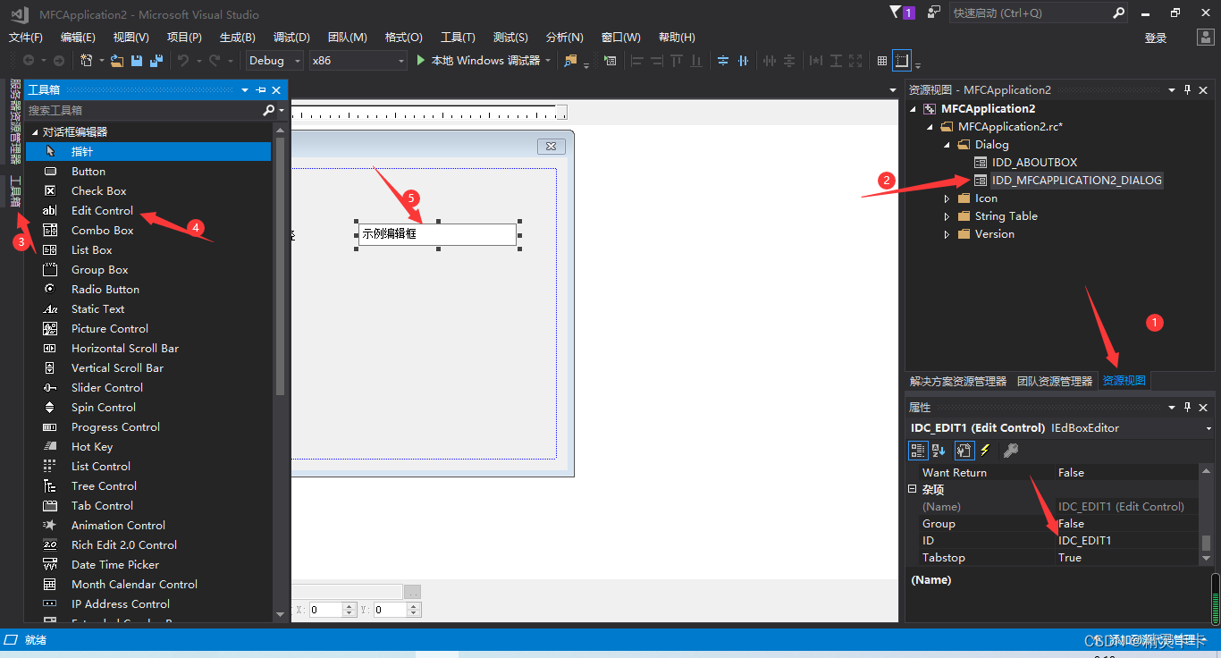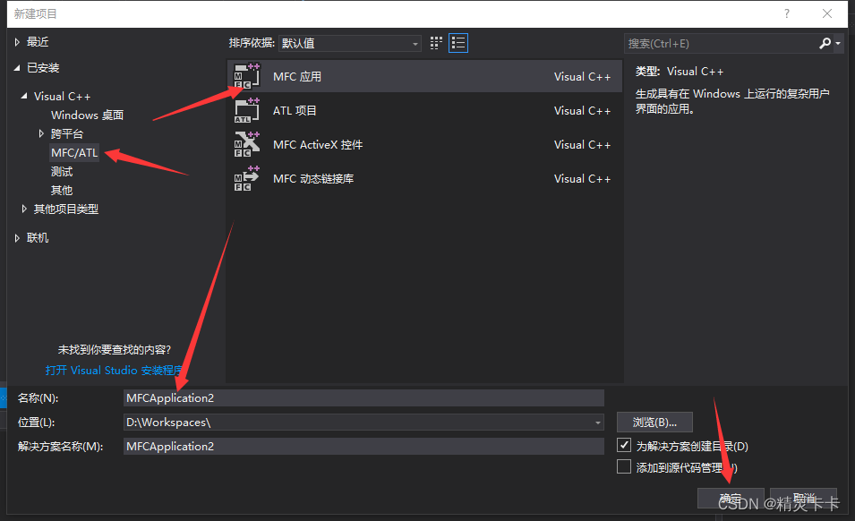 一、创建一个基于对话框的MFC应用程序功能,名称为“MFCApplication1”