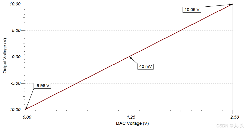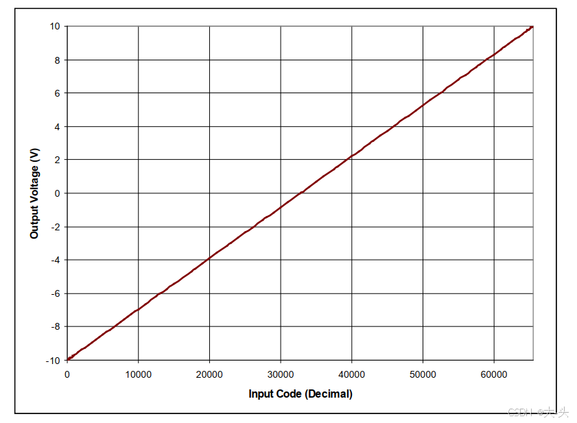 通过将 0 至 65535 范围内的输入代码应用到 DAC模块中,并且测量单个系统的输出电压并收集制成的线性图如下: