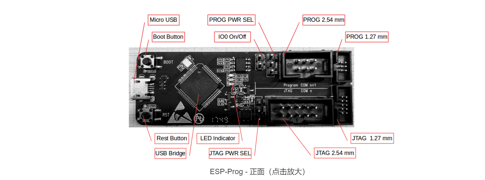 准备ESP-Prog一个、配套数据线一根,杜邦线若根;ESP-Prog用户指南