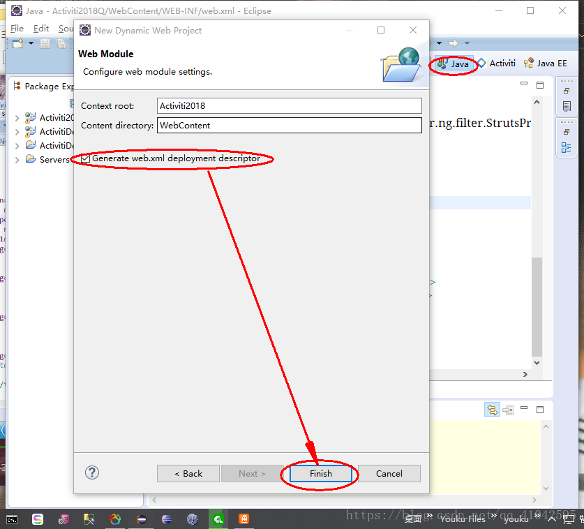 ( 重点 )接着勾选"Generate web.xml deployment descriptor"--->Finish完成(点击"Deployment..."或"web.xml"会自动找出web.xml的位置和弹出web文件)