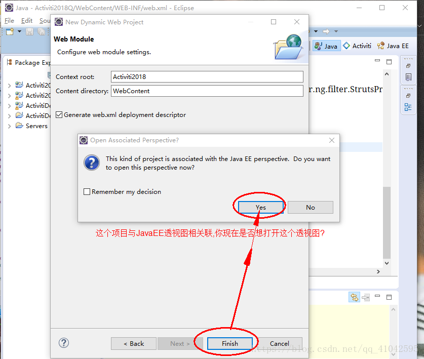 之后会出现个提示窗口,点击yes即可,接着自动从Java透视图跳转到Java EE透视图