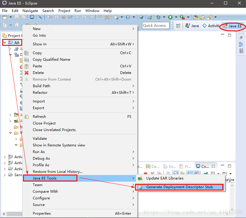 首先点击或选定"原项目"名------->右击选择Java EE Tools-------->选择第二项(注:若没有选定"原项目"名,它是灰的,不会亮起来)