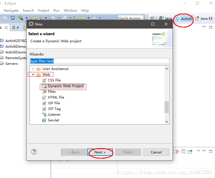 首先"在空白区右击--->选择New--->Other--->找到Web文件夹--->选择Dynamic Web Project--->Next"(图片显示了) 或者 "File--->Other--->找到Web文件夹--->选择Dynamic Web Project--->Next"