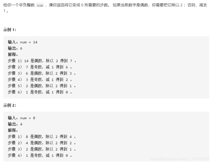 该博客主要讨论了一个C++类解决方案,用于计算将整数转换为二进制并消除所有零的过程所需的步骤。方法中,通过位运算检查数字是否为偶数(如果为偶数则除以2),否则减去1,同时记录操作次数。这个过程对于理解位操作和优化算法具有重要意义。
