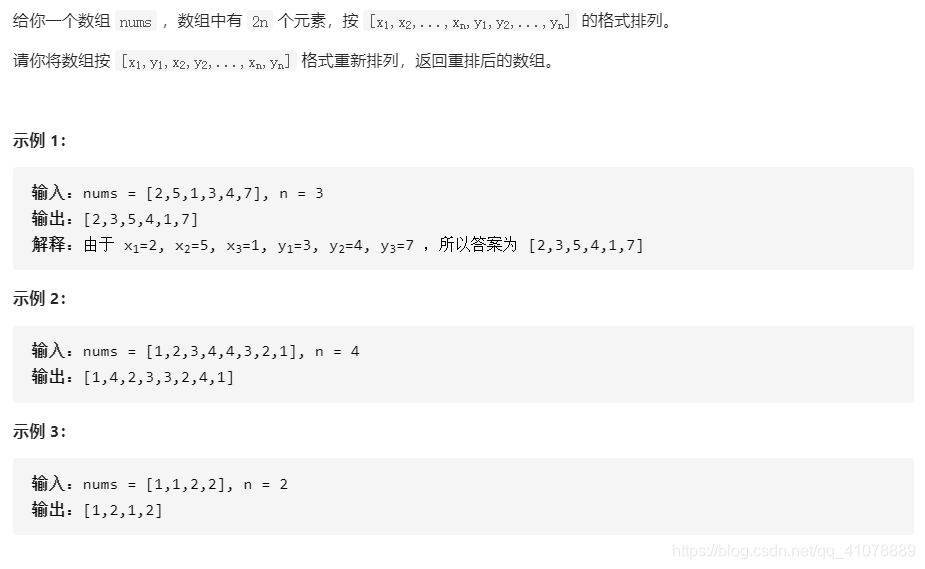 这段代码展示了如何使用C++将一个整数数组重新排列,通过遍历并交替插入元素到新数组中,实现数组的交错重组。适用于对数组操作的理解和练习。