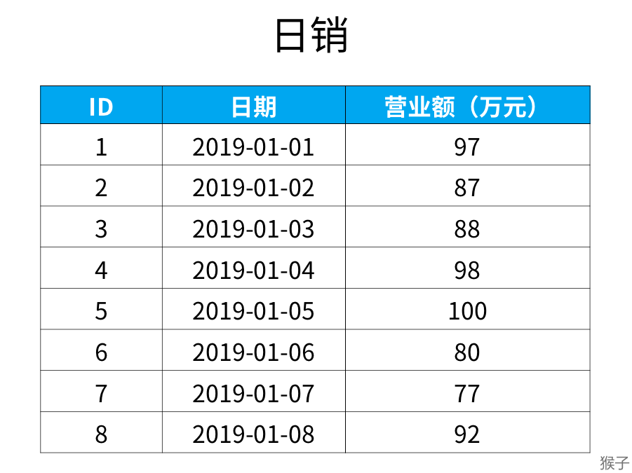 题目只需要找销售额大于前一天的ID、日期、销售额,不需要上表那么多数据。所以只需要提取中上表的ID、日期、销售额(万元)列。