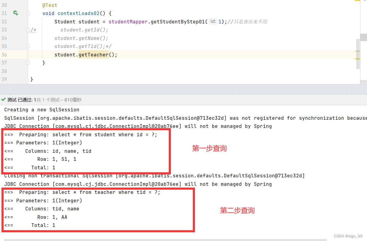 1、如果直接查询结果集,而不用,那么只执行分步查询的第一步
