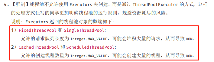在阿里java开发规范中,是强制不允许使用Executors创建线程池,我们不妨看看。