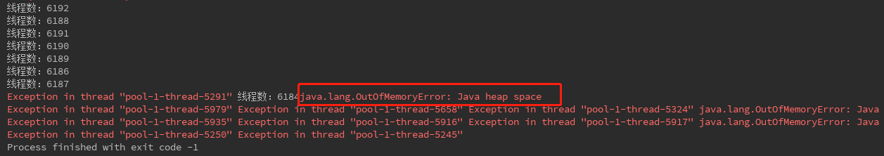 然后设置JVM的参数-Xms5M -Xmx5M,运行一小段时间,就会看到报错了。