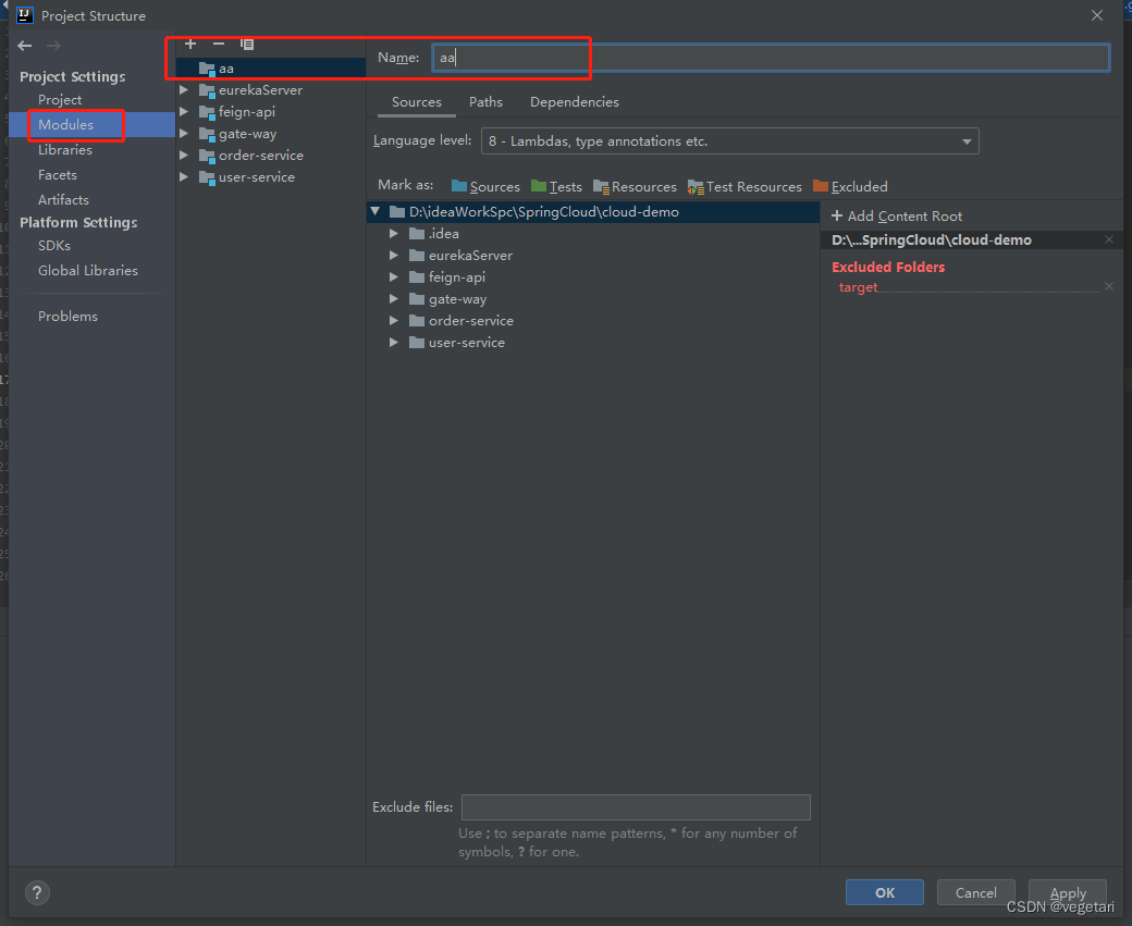 将cloud-demo 改为aa 就好了,然后重新导入项目。