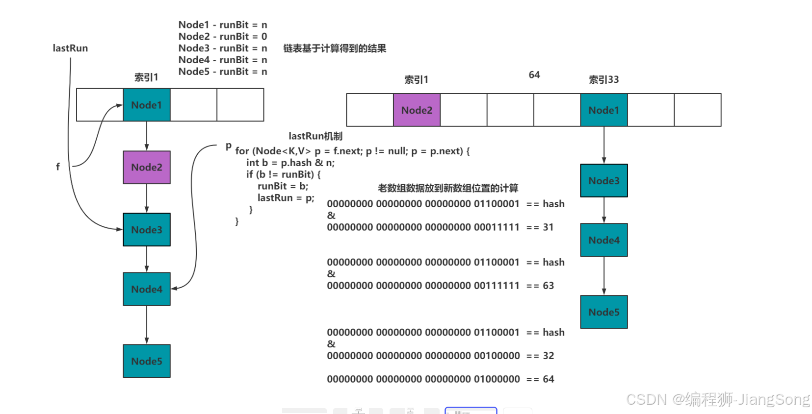 // 与老数组长度做&运算,基于结果确定需要存放到低位还是高位