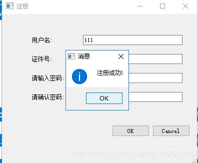 QMessageBox::information(this, tr("消息"), tr("注册成功!"), QMessageBox::Ok);