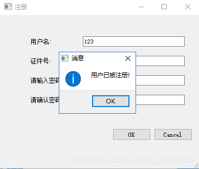 QMessageBox::information(this, tr("消息"), tr("用户已被注册!"), QMessageBox::Ok);