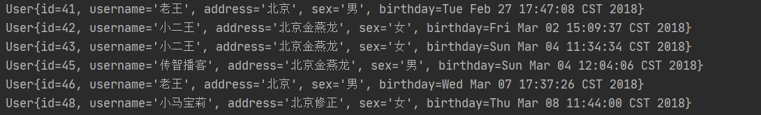 如上图所示:使用注解的方式查询出数据库表中的信息,结果如图三所示。