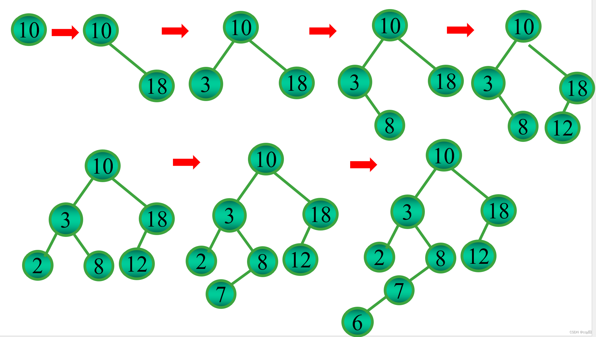 示例:关键字序列为 {10, 18, 3, 8, 12, 2, 7, 6}
