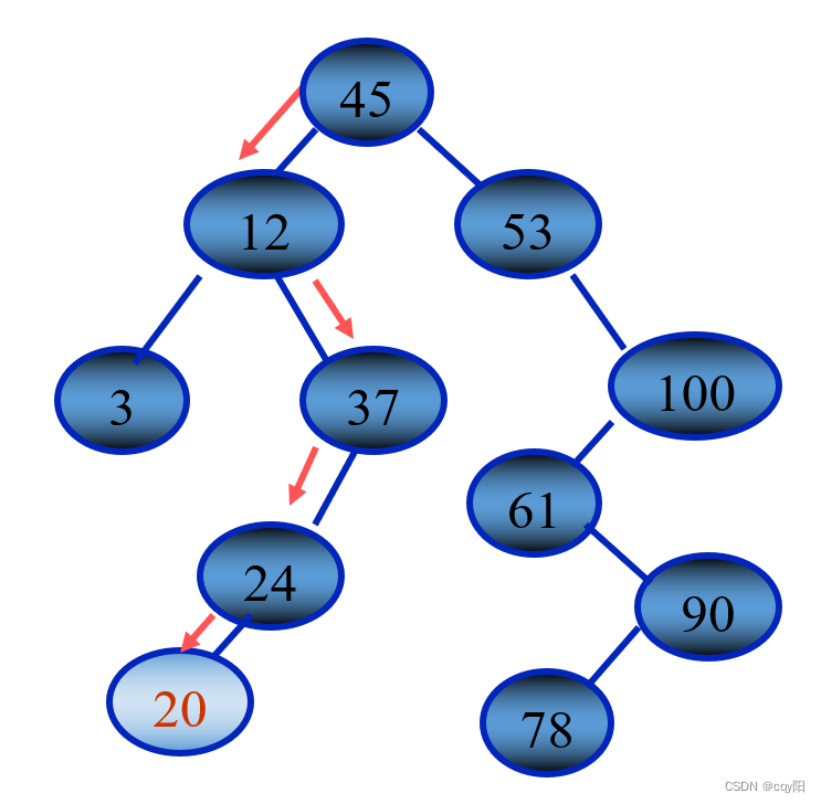 从根结点出发,沿着左分支或右分支逐层向下直至指针指向空树为止。——查找不成功