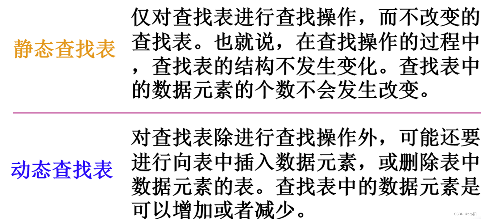 查找表按照操作方式来分有两大种:静态查找表和动态查找表。区别如下: