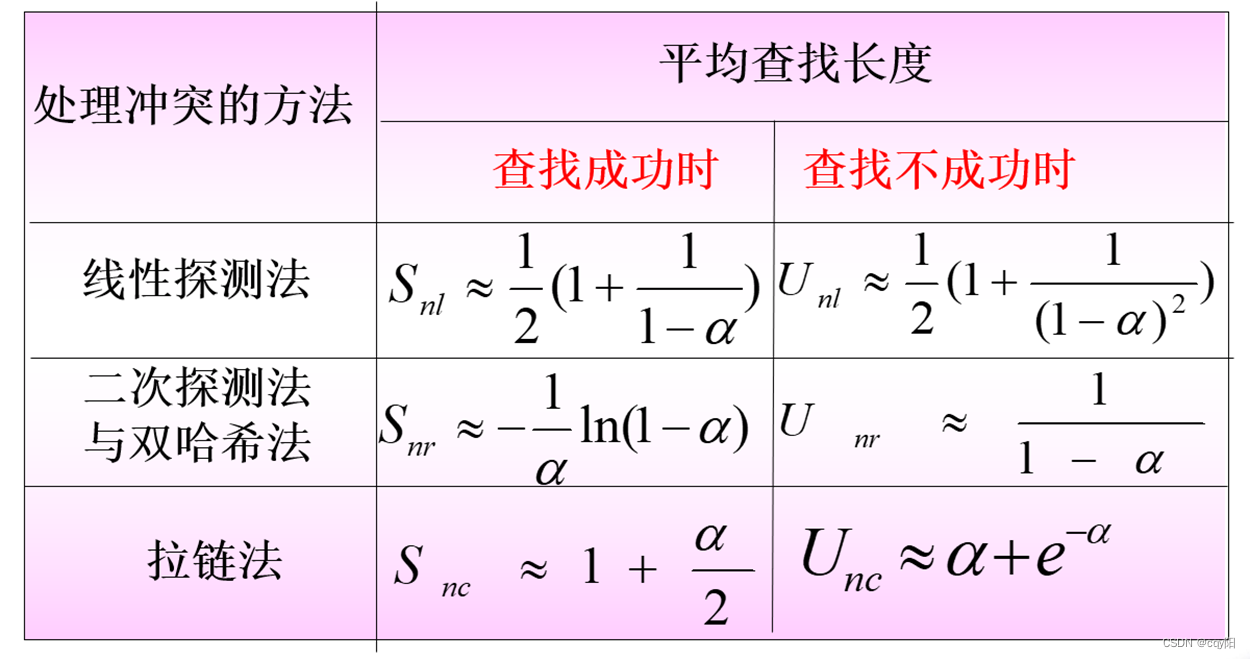 直观地看,α越小,发生冲突的可能性就越小,反之,表中装填的记录越多,发生冲突的可能就越大,查找时,给定值与关键字比较的个数也就越多。