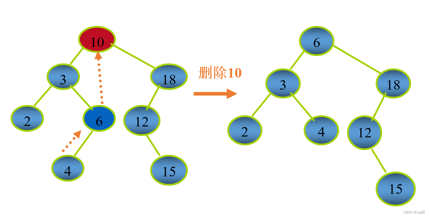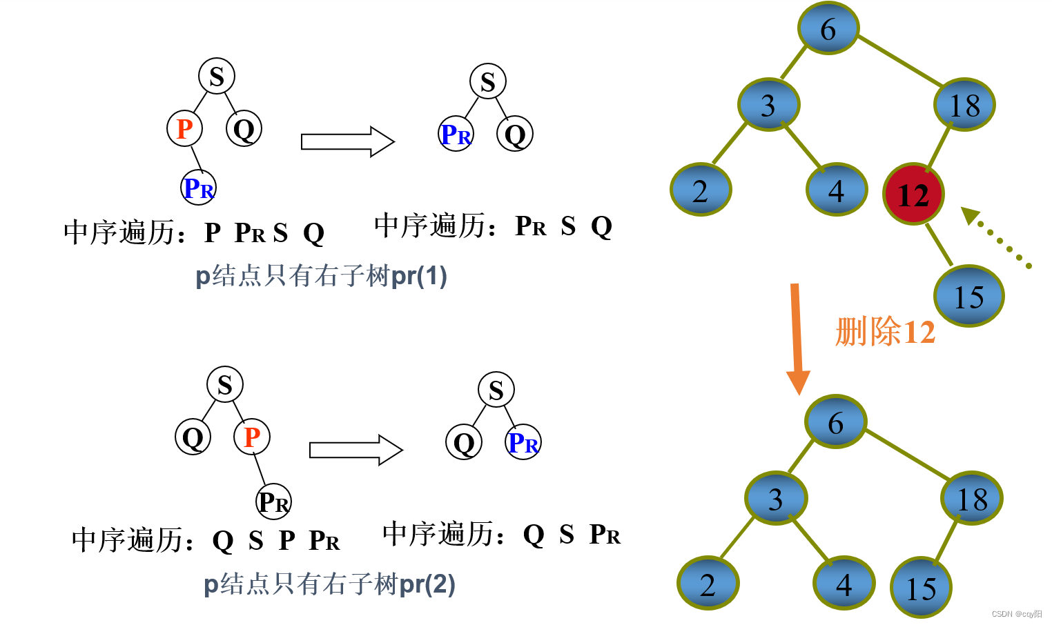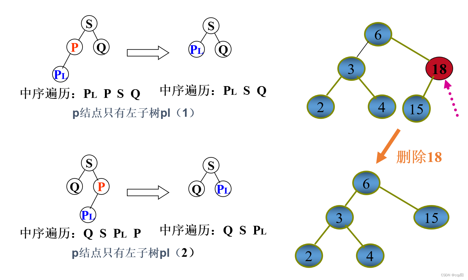从二叉排序树删除一个结点之后,要使得删除之后二叉树还是一棵二叉排序树;