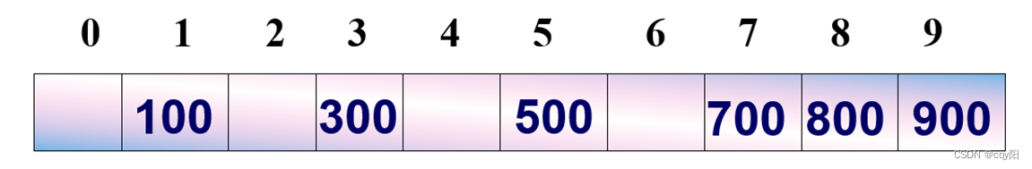 例:关键字集合为{100,300,500,700,800,900},选取哈希函数为:Hash(key)=key/100,则所建立的哈希表如下: