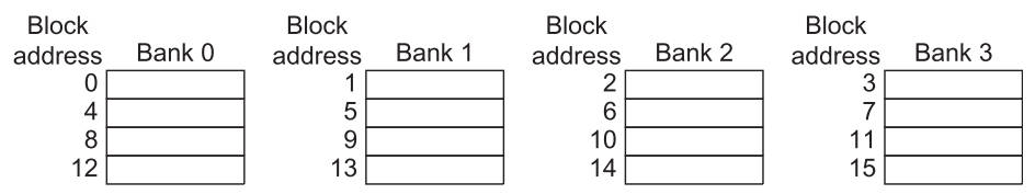 该思想的进一步延伸是将缓存划分为相互独立,支持同时访问的缓存组(cache bank)。常用的策略是将高速缓存按照不同的地址以交替的形式进行划分组,每个缓存组采用小型单端口的实现方式降低访问延迟。对不同bank的多个访问可以并行执行,而对同一bank的多个访问将会导致冲突。