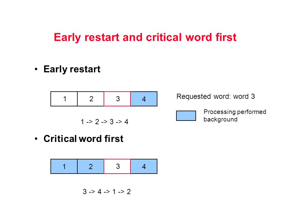该思想可细分为两种策略:关键字优化(Critical word first)和提前重启动(Early restart)。